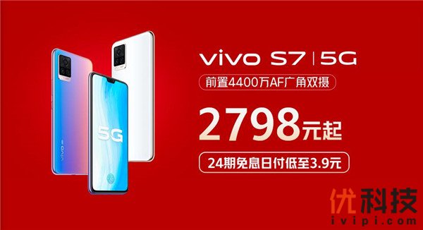 搭载前置4400万AF广角双摄镜头的vivo S7 5G版手机,活动售价2798元起,参与24期免息分期活动,日付最低仅需3.9元。作为一台超轻薄5G手机,vivo S7 5G版厚度约为7.39mm,轻巧纤薄的同时,握持手感出色。前置摄像头支持4K超清视频功能,高清视频自拍,无惧展现真我。