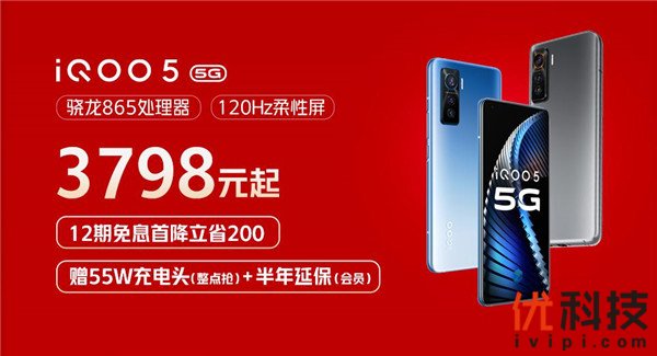 搭载骁龙865处理器和120Hz柔性屏的iQOO 5 5G版手机,在此次活动中售价3798元起,购机用户参与12期免息首降活动可立省200元,参与整点抢购活动可获赠55W充电插头一个,会员再加赠半年延保。对于追求性能的年轻用户来说,iQOO 5 5G版手机支持LPDDR5+UFS 3.1,性能强劲、实力先进。