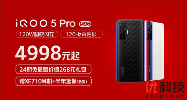 新品方面,支持120W超快闪充和120Hz柔性屏的iQOO 5 Pro 5G版手机也参与到此次促销活动中来,售价4998元起。参与24期免息分期活动,用户可免费获赠268元购机大礼包、XE710耳机,会员还可获赠半年延保服务。