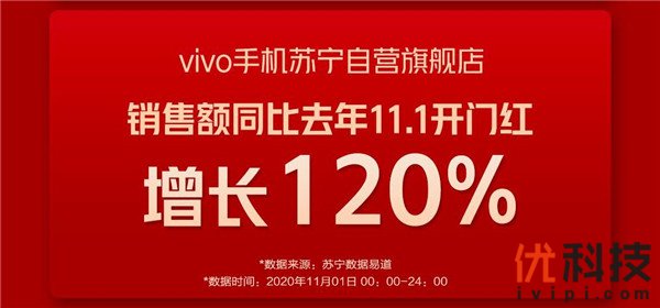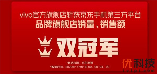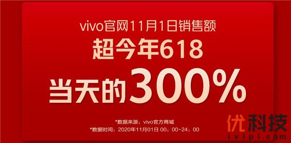 根据相关统计数据显示,活动当天,vivo京东自营官方旗舰店仅用时18分钟,销售额就突破亿元;vivo天猫官方旗舰店开售仅33分钟,销售额就超过去年11月1日全天;vivo手机苏宁自营旗舰店销售额,同比去年开门红增长120%;vivo官方旗舰店斩获京东手机第三方平台品牌旗舰店销量、销售额双冠军;vivo官网11月1日当天销售额超今年618当天300%。