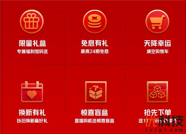 另外,vivo iQOO还准备了开门红、学生日、秒杀日、神券日、分期日、V粉日、直播日、高潮日等超能购机优惠天天送不停,更多活动等你来参与;限量礼盒专属福利加码送、最高24期免息有礼、天降幸运清空购物车、以旧换新赢好礼、直播购机送惊喜盲盒等活动持续加码,另有1111份意外惊喜等你来开启。20亿购机福利,和vivo iQOO一起玩转双11吧。