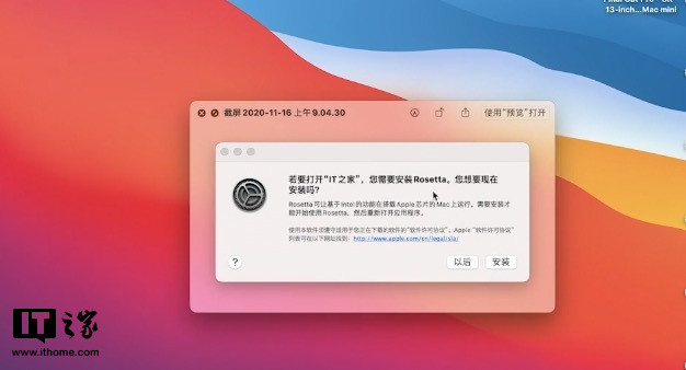 以IT之家手上搭载 M1 芯片的 13 英寸 MacBook Pro 为例,平时在使用的时候,基本上不会和 Rosetta 2 产生交互。