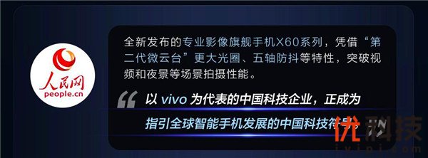 人民网表示,vivo X60系列凭借第二代微云台、更大光圈、五轴防抖等特性,突破视频和夜景等场景拍摄性能,这说明以vivo为代表的中国科技企业,正成为指引全球智能手机发展的中国科技符号。而央视新闻也认为,vivo X60系列上的科技创新也说明,中国企业正在用技术创新开辟出一条全新的科技赛道。