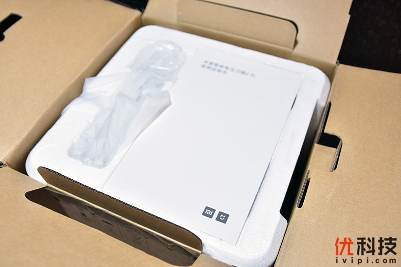 米家智能电压力锅2.5L的包装内部则是结构紧凑,打开上盖首先看到的则是使用说明书,以及旁边的电源线,至于米家智能电压力锅2.5L则是位于下方的两大块泡沫保护中,避免了运输途中所造成的损伤。