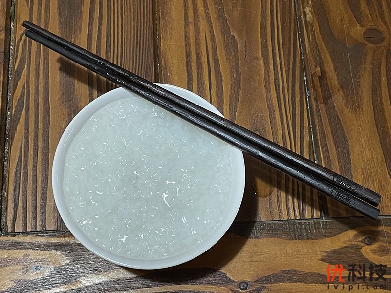 将白米粥盛入碗,可以看到通过米家智能电压力锅2.5L所煮的白米粥状态非常赞,粥的粘稠度刚刚好,不稀不干,并且其中的米粒状态均匀,入口第一感觉就是非常糯,口感远超我经常去的一家粥铺。