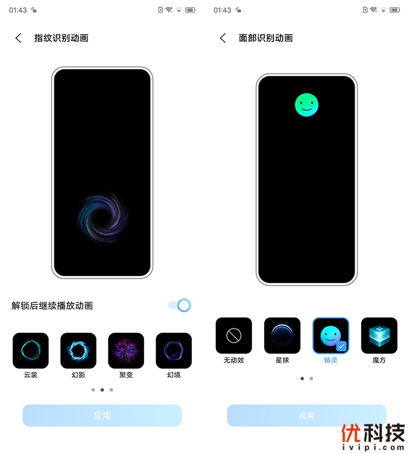 至于指纹识别动画、面部识别动画以及充电动画和插入USB动画等动画特效用户均可以在系统设置内进行个性化组合。