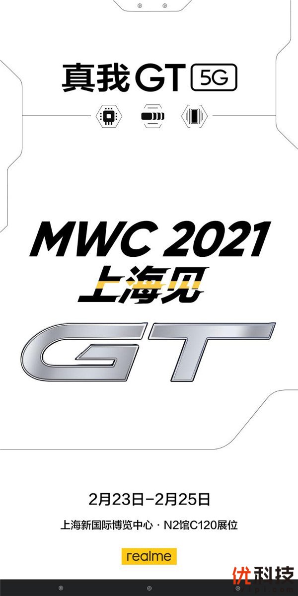 2021年2月19日—中国 · 上海—全球成长最快智能手机品牌realme将参展2021MWC上海展,这是realme在MWC展的首次亮相,带来全新的旗舰产品战略及性能旗舰新品——realme 真我GT系列。