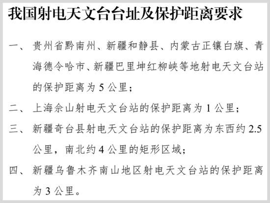 最后,部分射电天文台附近有距离保护,从 1 到 5 公里不等。