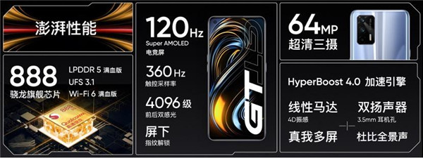 作为敢越级的科技潮牌,realme针对年轻人的喜好不断完善产品系列,推出“双平台+双旗舰”战略,全面布局中高端产品线。真我 GT作为双旗舰战略中的性能旗舰,搭载骁龙888超强芯片、满血版65W闪充以及4500mAh大电池,前所未有的GT模式、120Hz Super AMOLED电竞屏、新一代3D钢化液冷散热为年轻群体带来出色的性能体验。