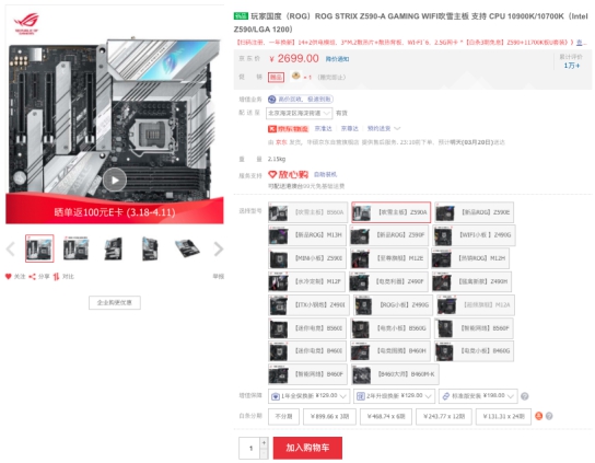 目前11代酷睿已开启预售,华硕Z590吹雪主板搭i7-11700K处理器套包预售价5499元,付定金立减100元,享3期免息,还有机会抢价值399元的风行GO耳机。