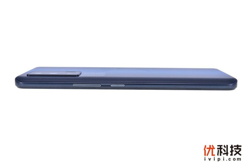 至于机身的右侧中框自上至下分别为一体式音量控制键和电源键,并且按键表面还有纹理点缀,日常盲操作也是非常的方便。