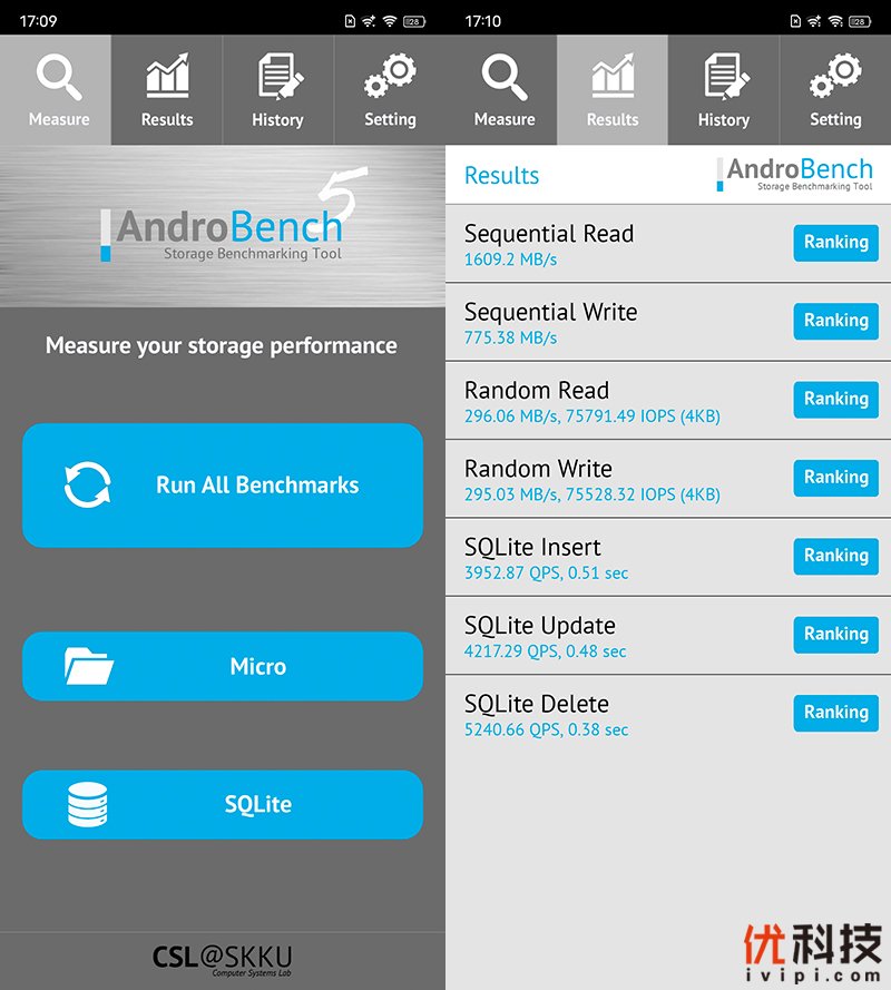 关于Androbench测试:AndroBench是一个基准测试应用,可以测量Android设备的4K随机存储性能,包括内部或外部存储测试。