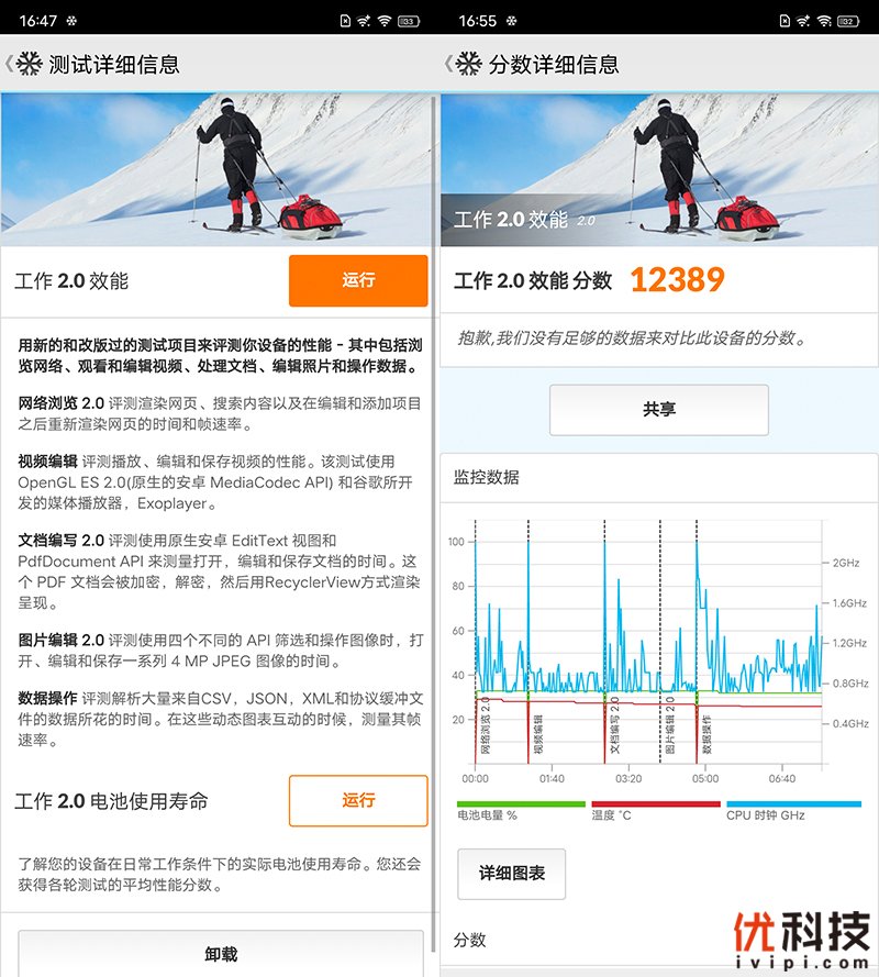 关于PCMark测试:PCMark是以整机综合性能为考量的测试软件,可精准反应手机日常使用的处理性能,多个日常测测试场景,例如网页浏览、视频编辑、文档编写、图片编辑等等,并可以进行电池续航测试。