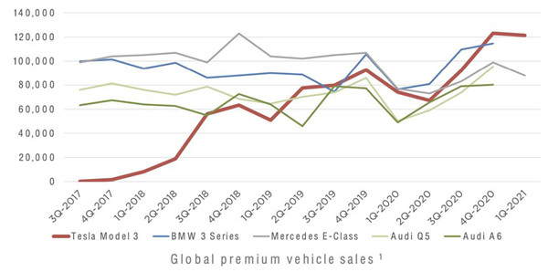 解读:面对全球芯片供应短缺,特斯拉通过快速更换芯片和供应商,确保Q1的营收、盈利均大幅提升。交付量也在仅有两款车型生产的情况下仍保持大幅增长,Model 3、Model Y在全球销售火爆。证明特斯拉抗风险能力优秀,同时对行业发展的判断较有远见。