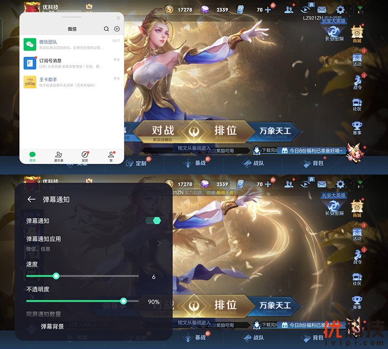 另外在游戏助手中还可以开启多窗口模式,支持微信和QQ的窗口模式运行,另外还支持有趣的弹幕通知功能,在游戏助手中可以自定义设定弹幕的速度和透明度等等功能。