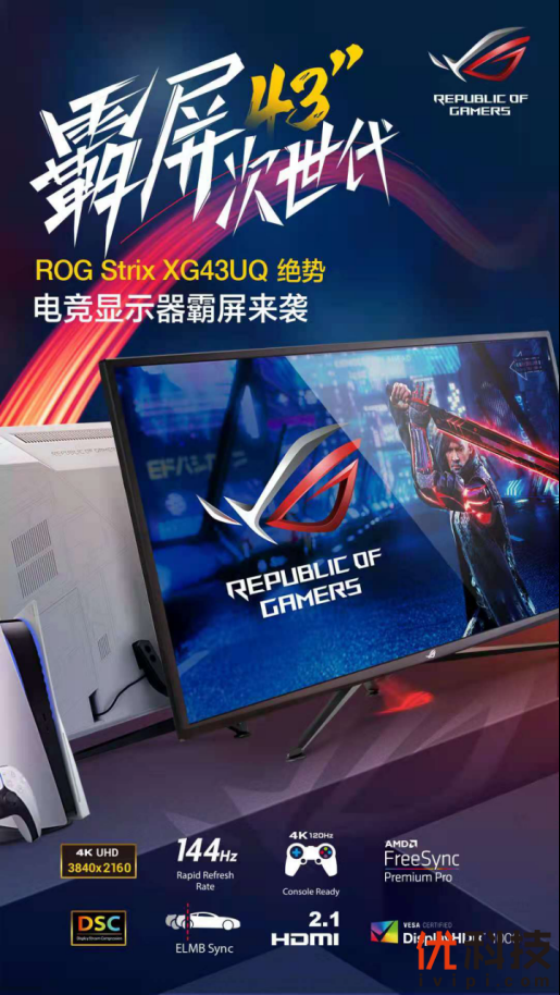 随着五一小长假和次世代游戏主机PS5国行版的到来,五天假期也成为了许多玩家们畅快电竞的绝佳时机。作为电竞次世代的标志,4K+144Hz的极致性能也成为了玩家们的追求,今天小编给大家带来的,就是这款拥有HDMI 2.1接口的ROG玩家国度新品:ROG STRIX XG43UQ绝势电竞显示器!