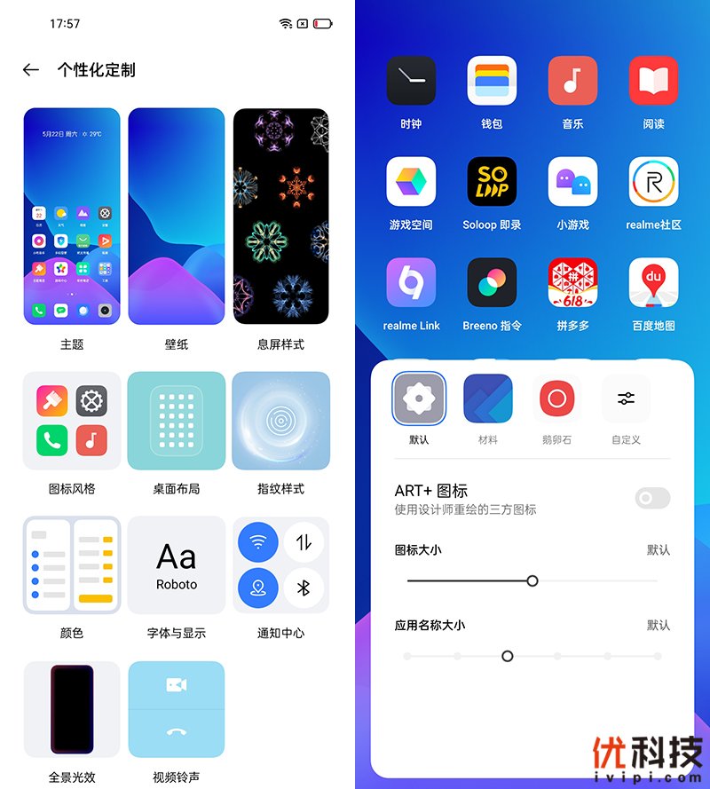 细节设计方面,用户可以手动选择桌面图标风格,多样化的图标可控设计让用户的桌面更具有个性化。另外系统内字体显示大小以及字体显示切换都是非常的方便。而在个性化定制功能中还可以选择更加炫酷的Art+壁纸,同时支持可选视频铃声功能,让用户的来电更加的个性化。