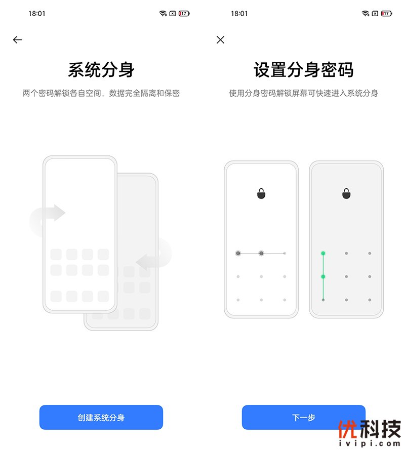 另外全新的realme UI 2.0还支持系统分身功能,开启该功能后,一个手机内实现双系统运行,两个系统匹配两套密码以及支持分身指纹,通过指定密码和指定指纹则可以进入到分身系统,其中分身系统内的数据完全隔离和保密,不必担心隐私泄露了。