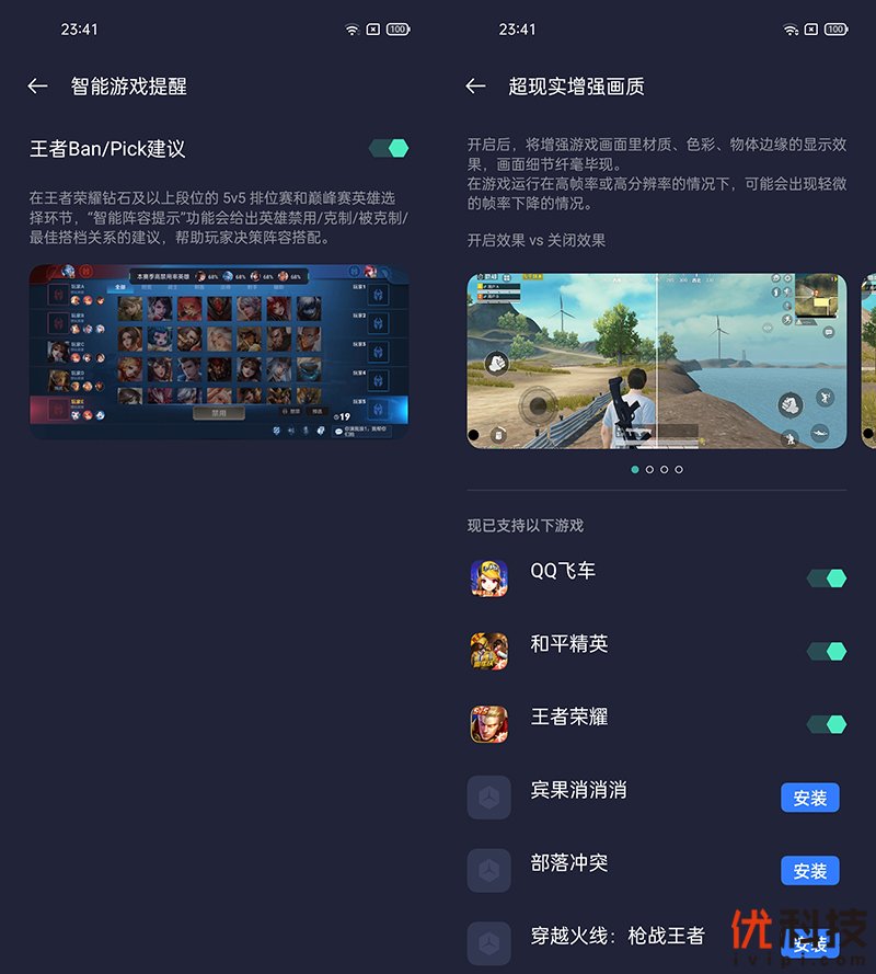 此外在游戏空间内还支持王者Ban/pick建议功能,更加方便玩家在排位赛以及巅峰赛环节快速搭配阵容。同时还支持超现实增强画质功能,开启后游戏画面更加的精致,进一步的提升游戏体验。