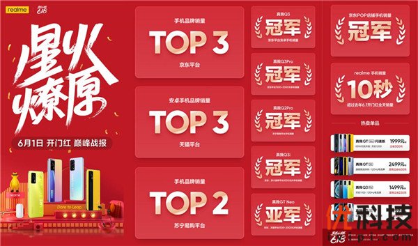 realme 真我618首战告捷,京东天猫苏宁首次进入销量TOP3