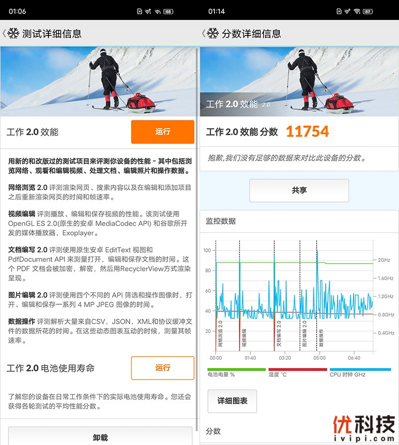 关于PCMark测试:PCMark是以整机综合性能为考量的测试软件,可精准反应手机日常使用的处理性能,多个日常测测试场景,例如网页浏览、视频编辑、文档编写、图片编辑等等,并可以进行电池续航测试。