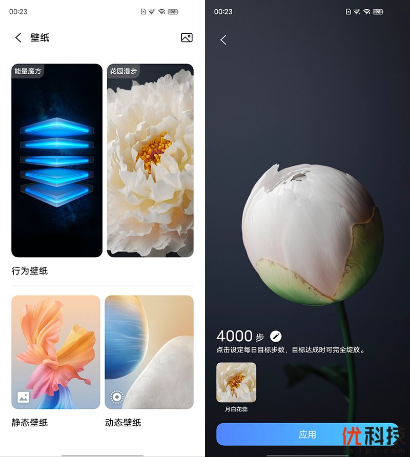 系统内的行为壁纸也是非常的有趣,选择适当的步数目标,当每天达到目标后,行为壁纸的状态将会发生变化,可以说是非常的有个性了。