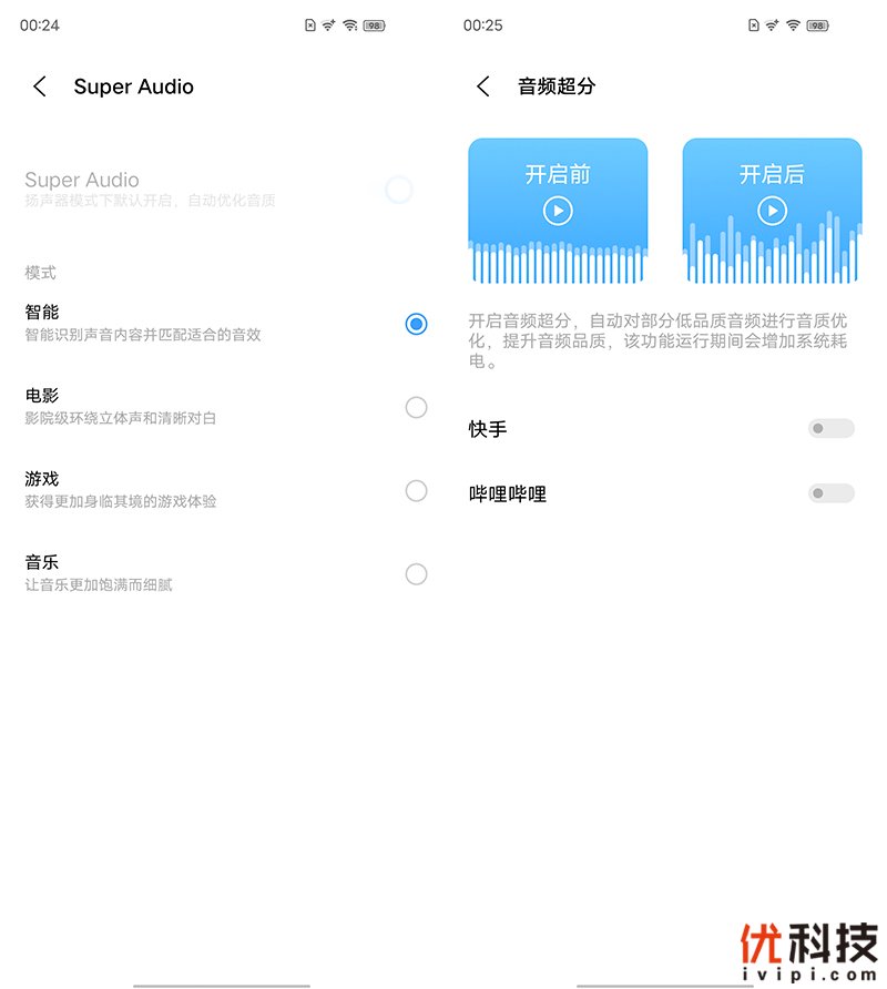 系统内还具备Super Audio 音效,其拥有五大优势领先技术,带来更好环绕立体声效果,享受影院级音效体验,而音频超分功能也是更加的实用,开启后可以自动对部分低音质音频进行优化。