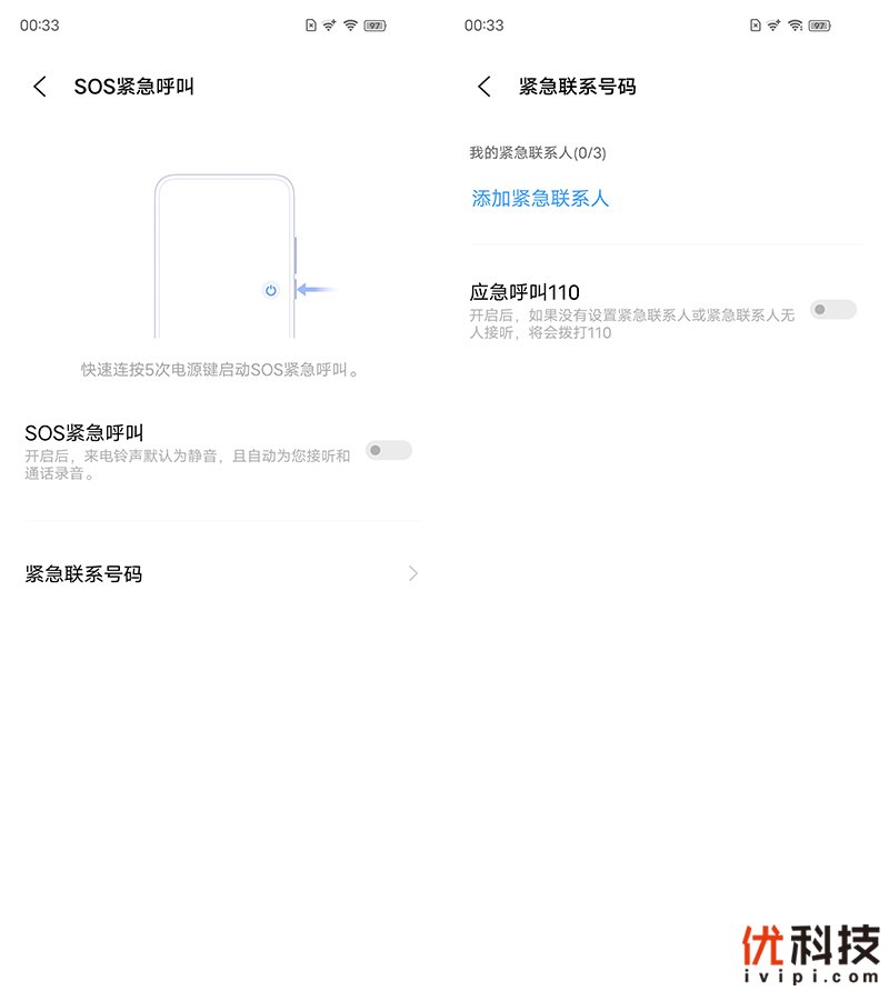 系统内的SOS紧急呼叫功能可以说是非常的有用了,在开启了该功能之后,在特殊环境下仅需要快速连按5次电源键即可启动SOS紧急呼叫模式,可以自动拨号到预先设定好的紧急联系人,并且发送定位信息,或者应急呼叫110,另外在SOS模式下,紧急联系人拨打该机将会自动进入到静音模式并自动接听,联系人可以快速了解到机主的现况。