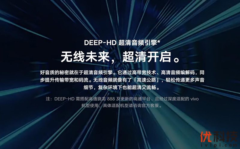 在音质表现方面,vivo TWS 2搭载了全新的DEEP-HD 超清音频引擎,将重塑无线高清音频。DEEP-HD 超清音频引擎不仅沿用了vivo TWS Neo上的aptX Adaptive 编解码技术,可提供1.5倍于传统编解码的信息量。配合具有突破性的QHS高带宽技术后,vivo TWS 2的音频传输带宽最大提升1倍,加上全新的天线设计,vivo TWS 2的无线连接稳定性提高 20%,即便是在复杂环境下依然也可以获得流畅的聆听体验。