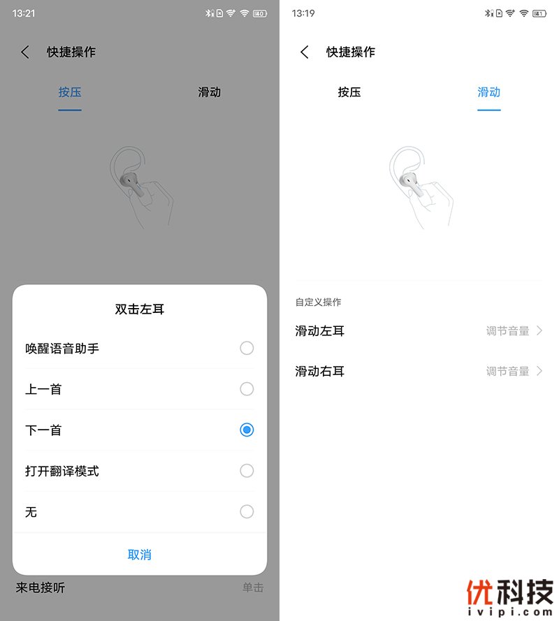 而关于耳机的快捷操作设置也是非常的全面,支持按压和滑动的多项选择,便于用户以最快的时间熟悉操作。
