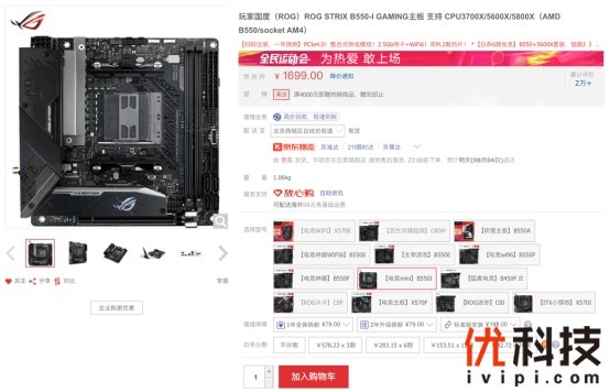 接下来,为玩家推荐的是能量爆棚的ITX小钢炮华硕ROG STRIX B550-I GAMING主板,其一经发布就创造了B550主板世界内存超频纪录,近期更是以DDR4-6234成绩拿下AMD平台内存世界超频冠军,再次证明超强实力,绝对是玩家打造B550 APU小钢炮的明智之选。目前京东售价价1699元,还有6期免息,购买链接: