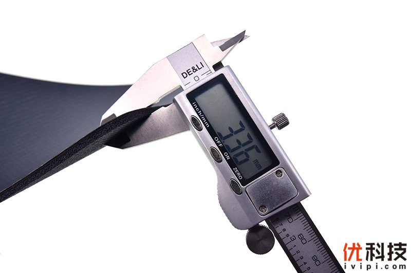 墨罗碳纤维鼠标垫的实测厚度为3.36mm,还是较为厚实的,即便是手重的用户在使用中也会体验到墨罗碳纤维鼠标垫的弹性。