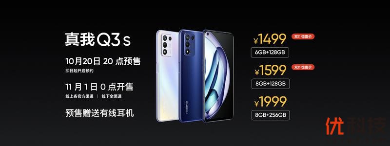 真我Q3s系列售价1599元起,首次将骁龙778G带到1500元价位段。真我Q3s拥有6GB+128GB、8GB+128GB、8GB+256GB三个版本,双11惊喜价分别为1499元、1599元、1999元。