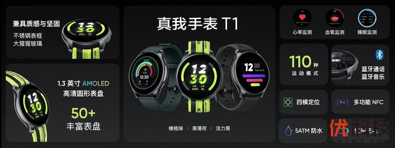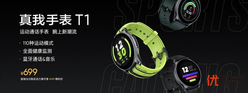 真我手表T1售价699元,首销6期免息分期。首销当日购买活力黑可享受599元限时价。