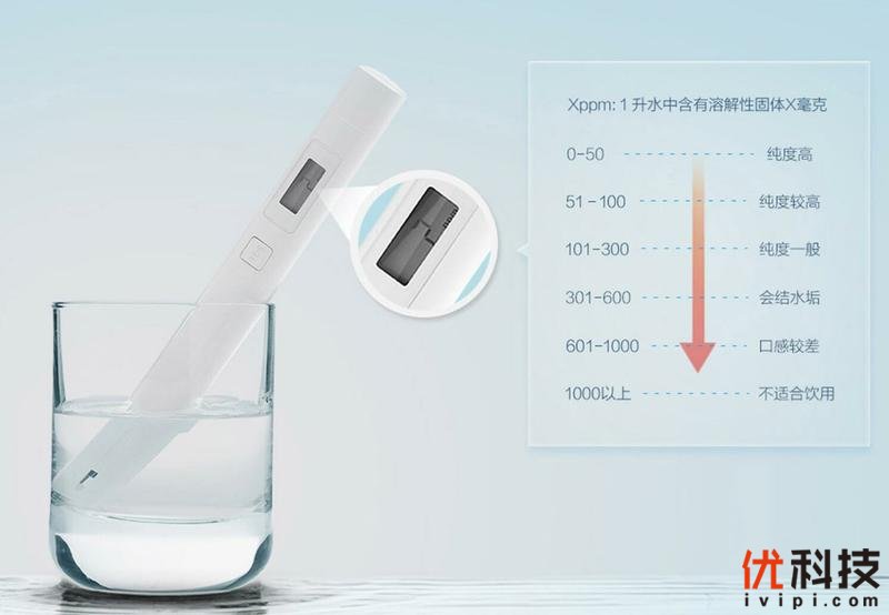 至于实际使用也是非常得方便,通过容器接入需要检测的水,然后将小米水质TDS检测笔探入水中按下按键即可在屏幕上显示水的TDS值,其中TDS值越低则表明水中的溶解性固体越少,水质越纯,当TDS值低于600则可以饮用,600~1000之间则口感较差,高于1000则不适合饮用。