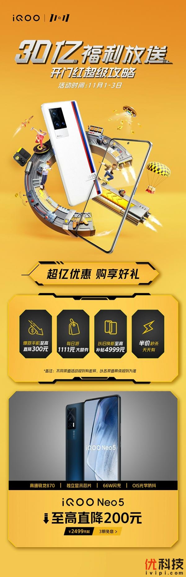 双11期间,iQOO Neo5 8+256G版本渠道到手价2399元、12+256G版本渠道到手价2699元、12+512GB版本渠道到手价3099元。双11期间如此重磅的优惠力度,无疑是今年最佳的入手时机。
