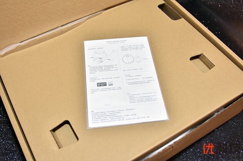打开米家免洗扫拖机器人的包装上盖首先映入眼帘的则是米家免洗扫拖机器人的使用说明书,内部介绍也是非常的详细,便于用户快速上手使用。
