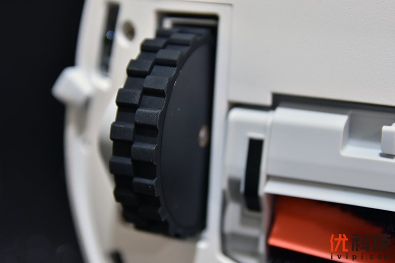 而米家免洗扫拖机器人的驱动轮则是采用了较大尺寸设计,配合着橡胶材质的设计,整体上有着不错的通过性。