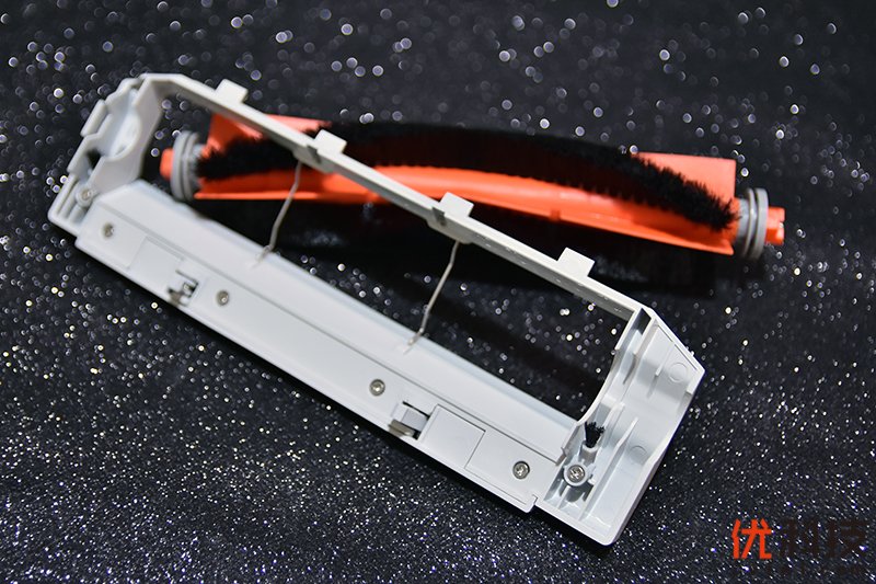 米家免洗扫拖机器人的滚刷同样支持拆装,操作起来也是非常的简单,毕竟在日常使用时会卷入一些易于缠绕的毛发等杂物,此时就需要取下滚刷配合着包装内附送的清理工具来处理了。另外细节方面可以看到在滚刷防护罩内部还配备了两个小毛刷,便于清理滚刷转轴处。