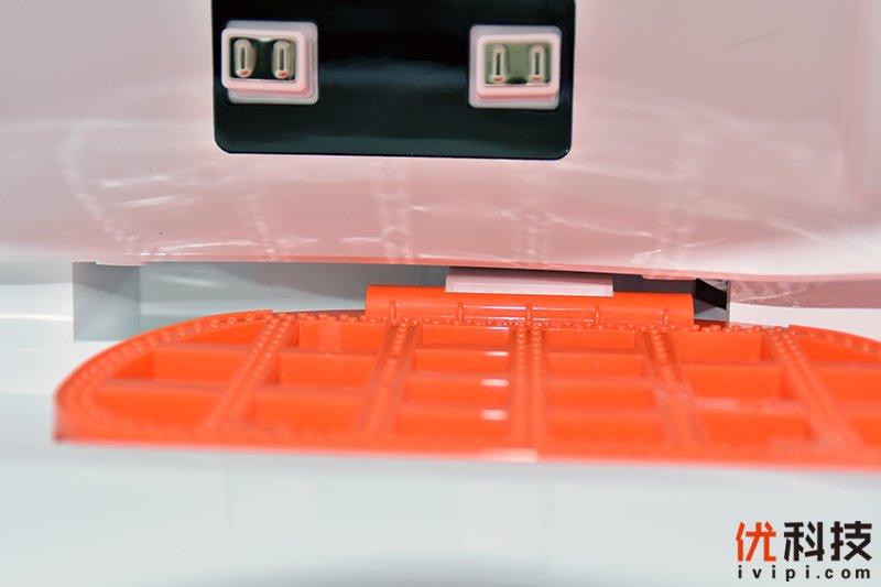 清洗站的回充槽内设计也是非常的全面,内部中心为充电触点,而底部红色区域则是米家免洗扫拖机器人的拖布清洗区域,而回充槽四周还配备了四个独立滑轮,避免了米家免洗扫拖机器人在内部出现的摩擦状况。另外清洗站还具备风干功能,可以对米家免洗扫拖机器人的拖布进行风干,避免了用户手动更换拖布的麻烦。