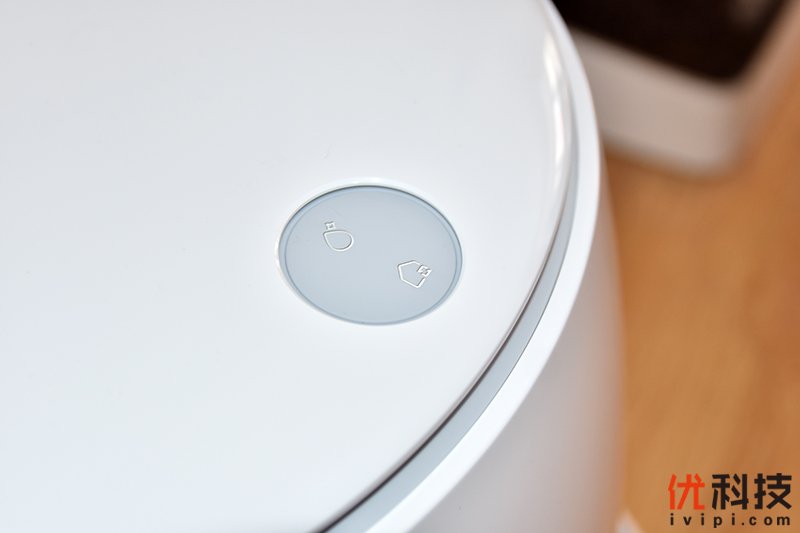 米家免洗扫拖机器人清洗站顶部采用了圆形的上盖,并且按键部分采用了镂空设计,至于按键功能则是清洗拖布以及扫拖/回充功能,并且按键同样具有背光设计。