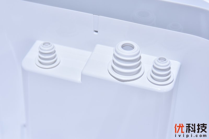 取下两个水箱可以看到内部的水路接口,接口均采用了软质硅胶材质,起到了防漏水的功能,避免了清洗站内部的损伤。
