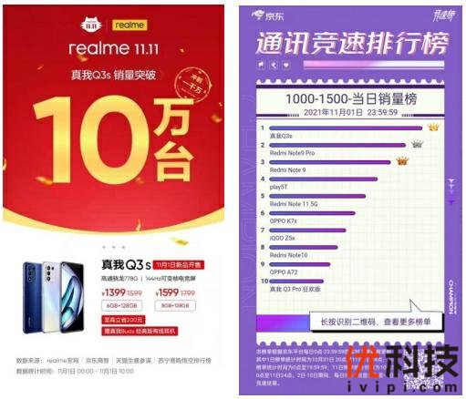 今年双11期间,realme提前完成中国区千万销量目标,真我Q3全系列产品表现尤为亮眼,Q3系列累计成功突破150万台大关,真我Q3 Pro更是火爆售罄;同时,真我Q3s同样凭借越级性能和潮玩设计,双11开门红当天销量突破10万台,实现口碑销量双丰收,同时荣膺1000-1500元价位段手机销量TOP1,坐实全新一代“千元机皇”称号。