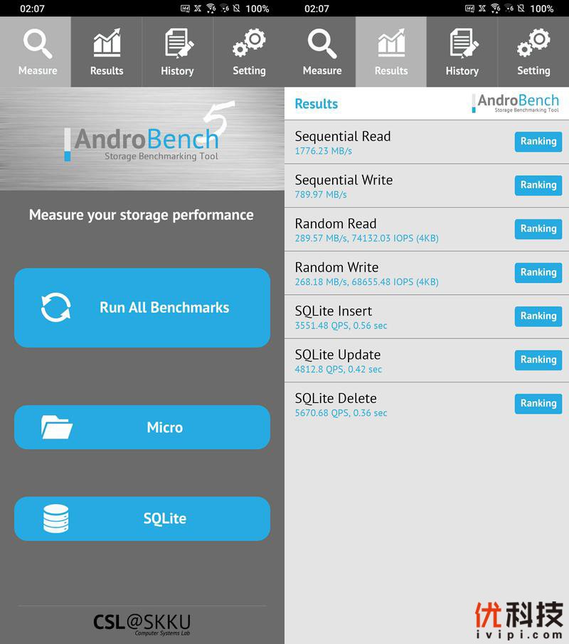 关于Androbench测试:AndroBench是一个基准测试应用,可以测量Android设备的4K随机存储性能,包括内部或外部存储测试。