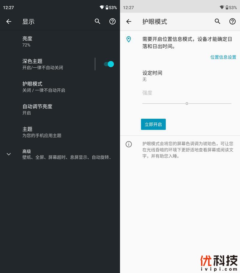 而在显示方面,系统内还支持深色主体功能,得益于显示屏本身的特性,深色主体也能够更加地节省功耗,并且还支持自动切换和定时切换功能,另外还支持护眼模式,同样也支持自动切换和定时切换功能。