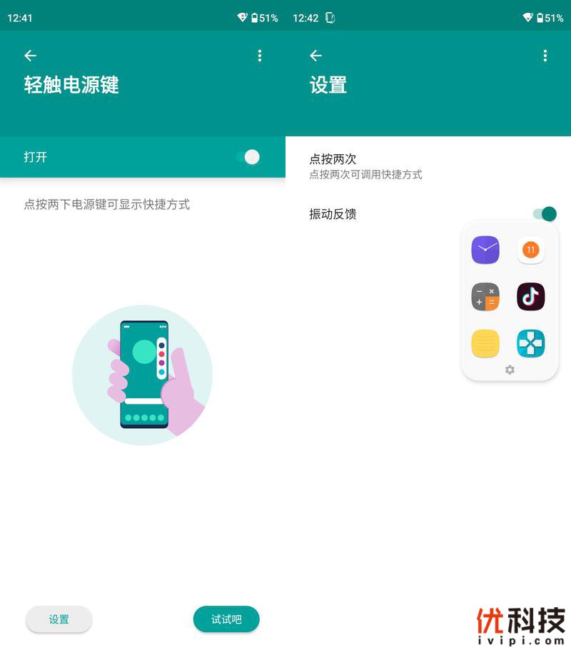 可以设定轻触电源键来唤醒侧边快捷工具栏,操作起来非常的方便,并且内部程序支持自定义。