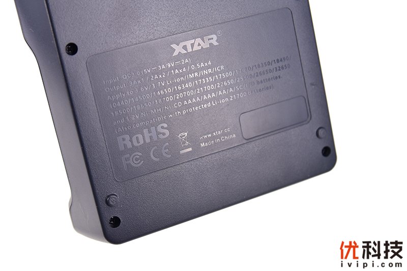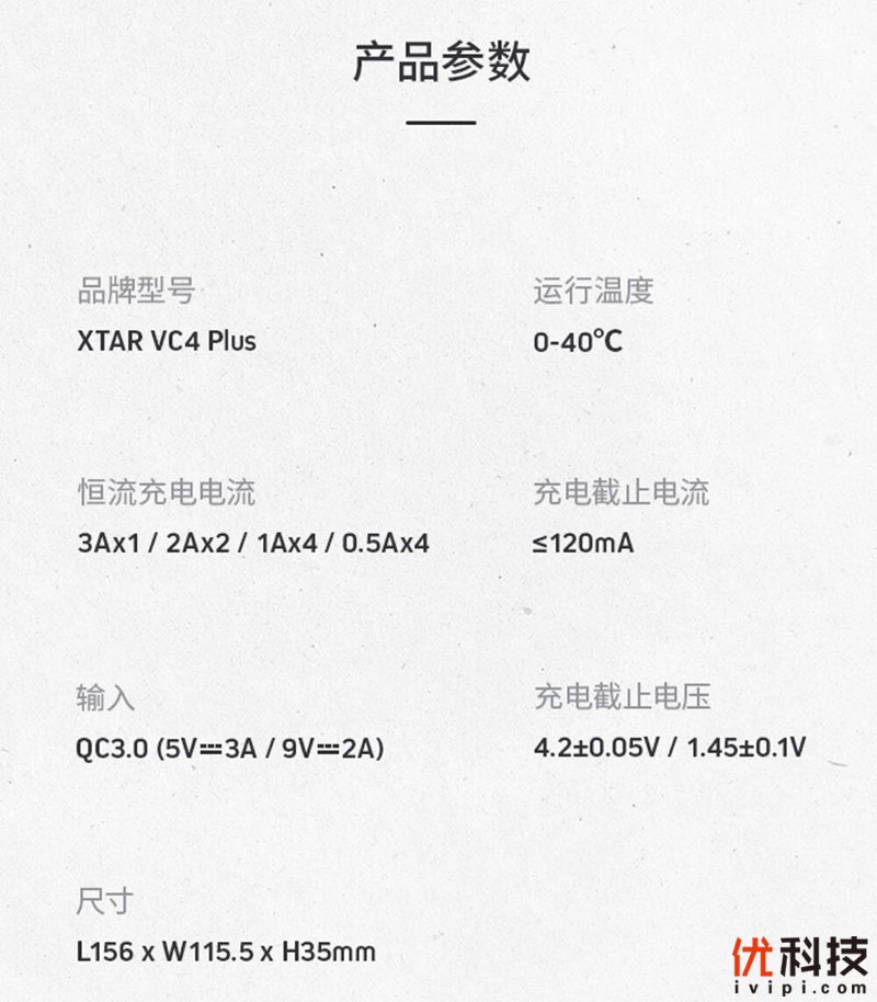 其中底部还标有XTAR VC4 PLUS充电器的所支持电池型号,非常的全面。