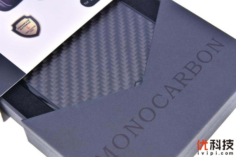 其中包装的内部采用了抽屉式设计,非常的有个性,并且抽屉开口还采用了“V”字形设计,配合着内部手机壳背部的碳纤维纹理,整体上高级感十足。