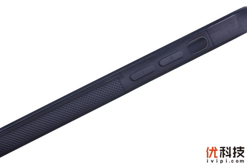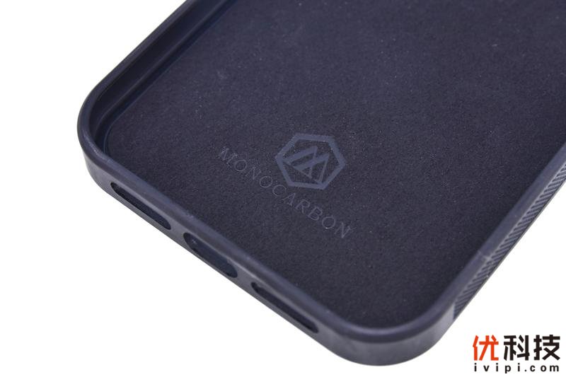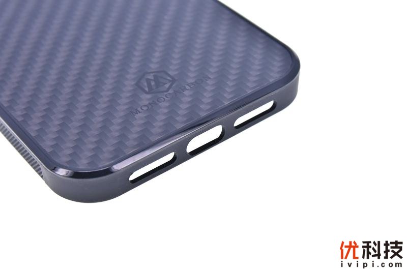 细节方面,墨罗碳纤维手机壳可以说非常得精致,首先在手机的两侧中下部手掌握持部分,中框还配有3D防滑颗粒设计,握持感也是相当得不错,另外按键部分采用了一体式设计,避免了手机壳内部进灰对于手机中框的划伤,而在手机静音拨杆部分则是采用了较大尺寸的开孔,日常使用时也避免了刻意用手指甲去拨动,至于按键部分则是相对于前系12系列有着一定的凸起,按压手感更好了。