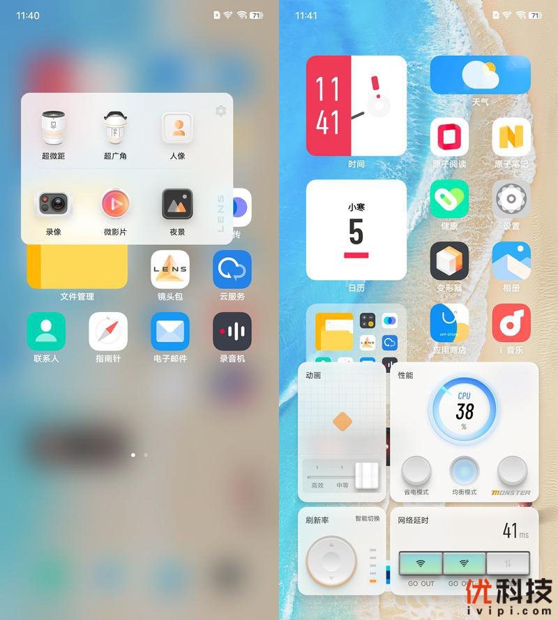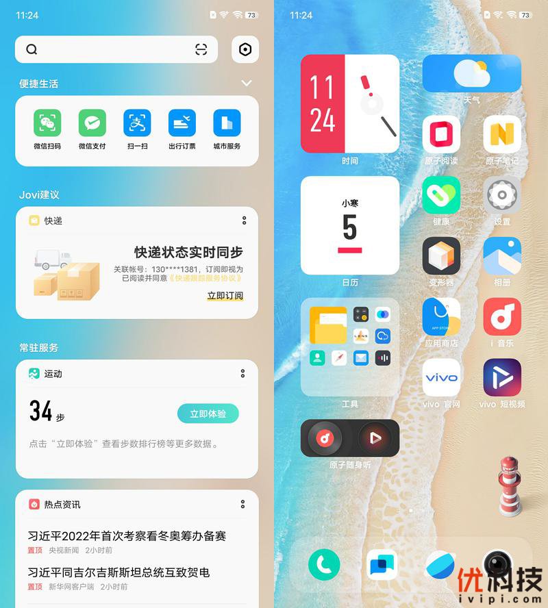 首先主屏的设计更加的个性化,流畅度也是大幅提升,在部分场景,除了快,更加跟手、精准、理解并响应用户的所思所想。并且负一屏采用信息轻量化设计,多个卡片智能展开收起,保持第一视觉清爽干净,而便捷生活快捷方式也是支持自由设定,例如微信扫一扫、支付等实用功能均可以一键启动。